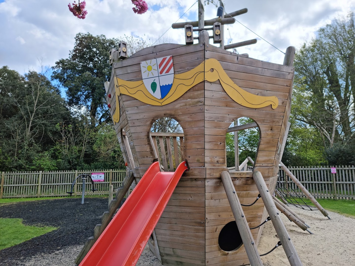 Access to three-tiered play frame, slides, climbs, tunnels, mini sports pitch, and outdoor play area with bouncing pillow, zipwire, football pitch and pirate ship