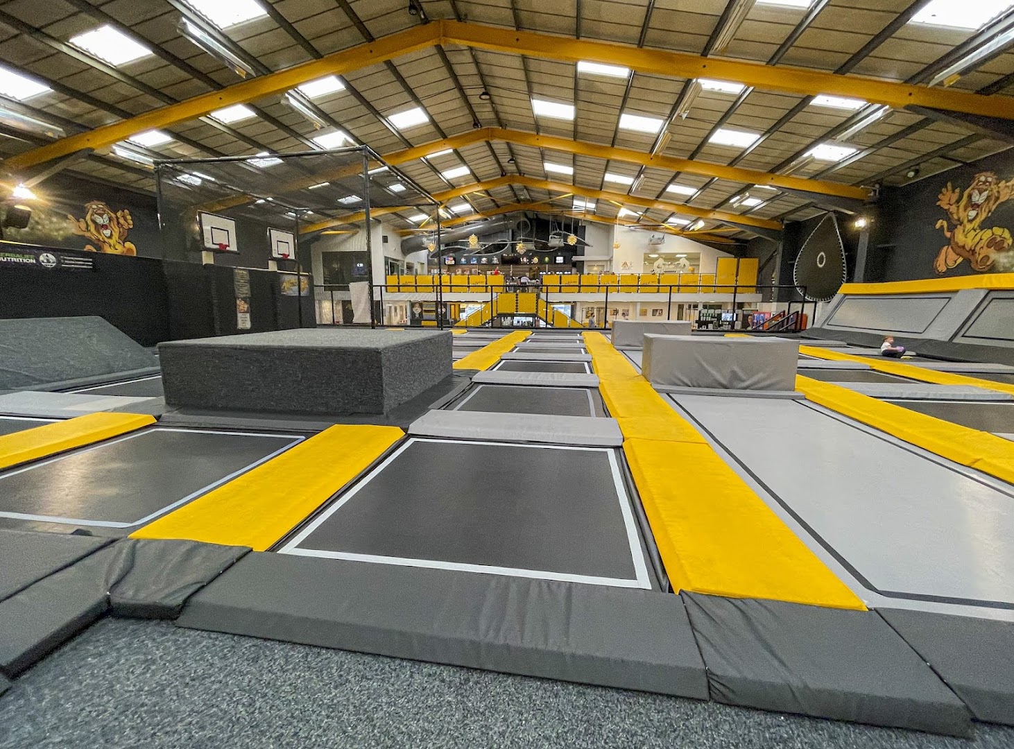 The park features an impressive array of attractions including interconnected trampolines, a large air bag landing area, gladiator-style battle beams, a skateboard-style half pipe, an interactive reaction wall, a tumble track for tricks and flips, and basketball dunk nets. There's also a dedicated soft play area on the bottom floor for younger visitors. Open jump sessions allow children to explore all these features, whilst dedicated AirTots sessions cater specifically for under-5s in a quieter, age-appropriate environment.