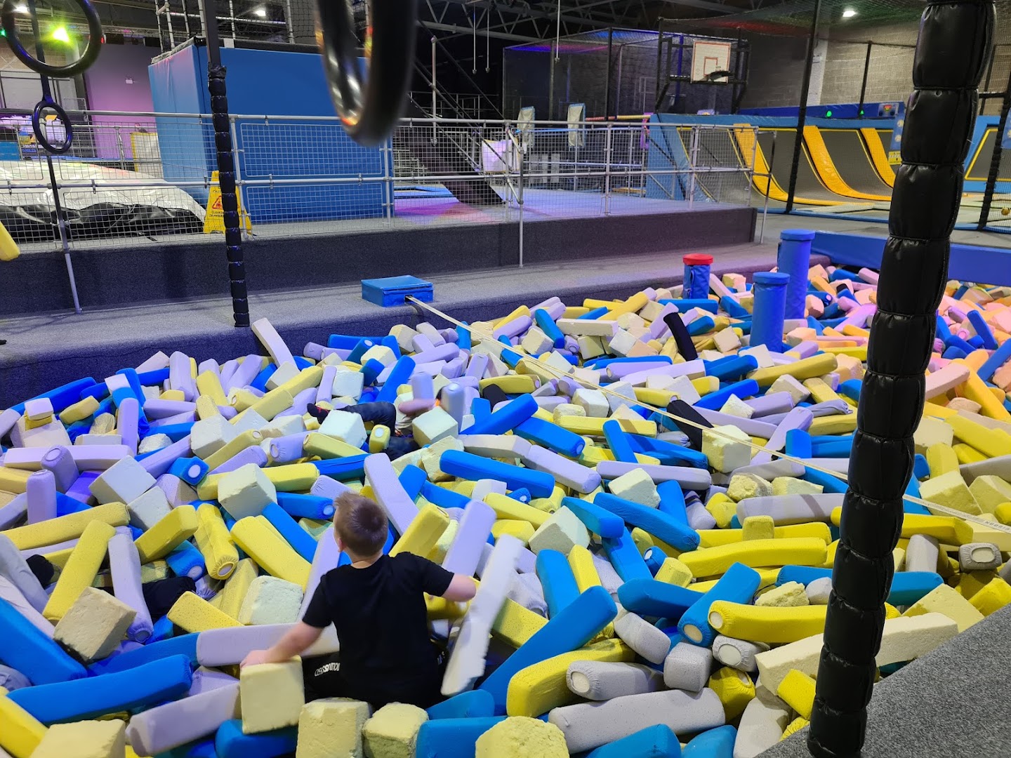 The park offers Open Play sessions starting from £16.50 for 60 minutes, giving children aged 4+ access to all trampoline activities including battle beam, reaction walls, and the Excite Tunnel. For younger visitors, there's a massive soft play area designed specifically for ages 0-5, featuring colourful ball pits, multi-level climbing frames, slides, stepping stones, rope ladders, and a dedicated baby area for under 2s. Toddler Play sessions combine structured games like colour play, musical movement, and parachute games with free exploration time, priced from £7.50 for additional children.