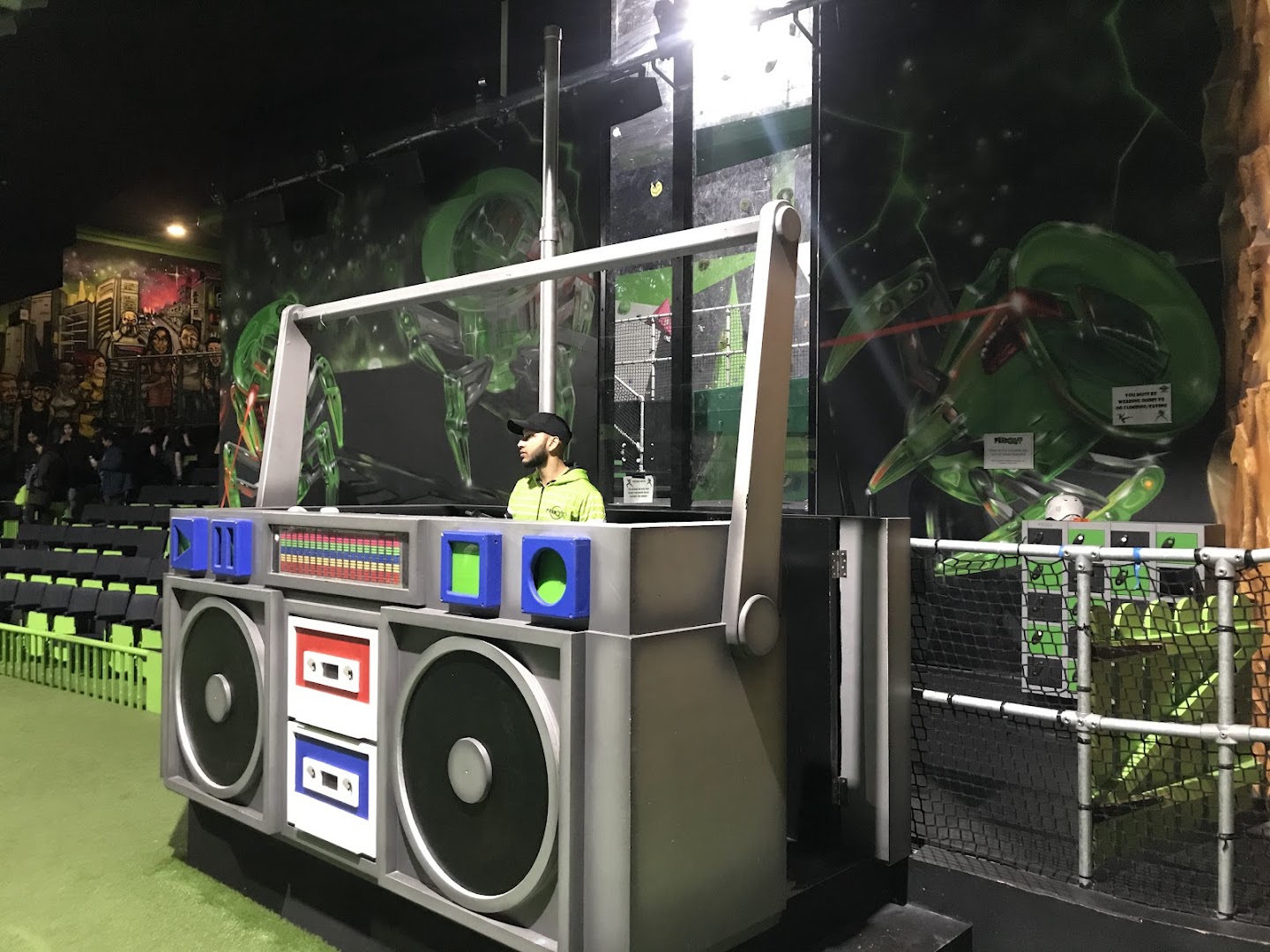 Practical facilities include an on-site café serving food and refreshments, private party rooms for birthday celebrations, and nearby parking (though you must validate your parking using the portal inside the park to avoid charges). All participants must wear Flip Out grip socks (£3 if purchasing on-site). The venue is accessible with free admission for registered carers with ID. Opening hours vary between term time and school holidays, with extended hours during holiday periods. Booking in advance is required through their online system, and it's worth visiting during weekday mornings or early evenings to avoid the busiest weekend afternoon sessions.