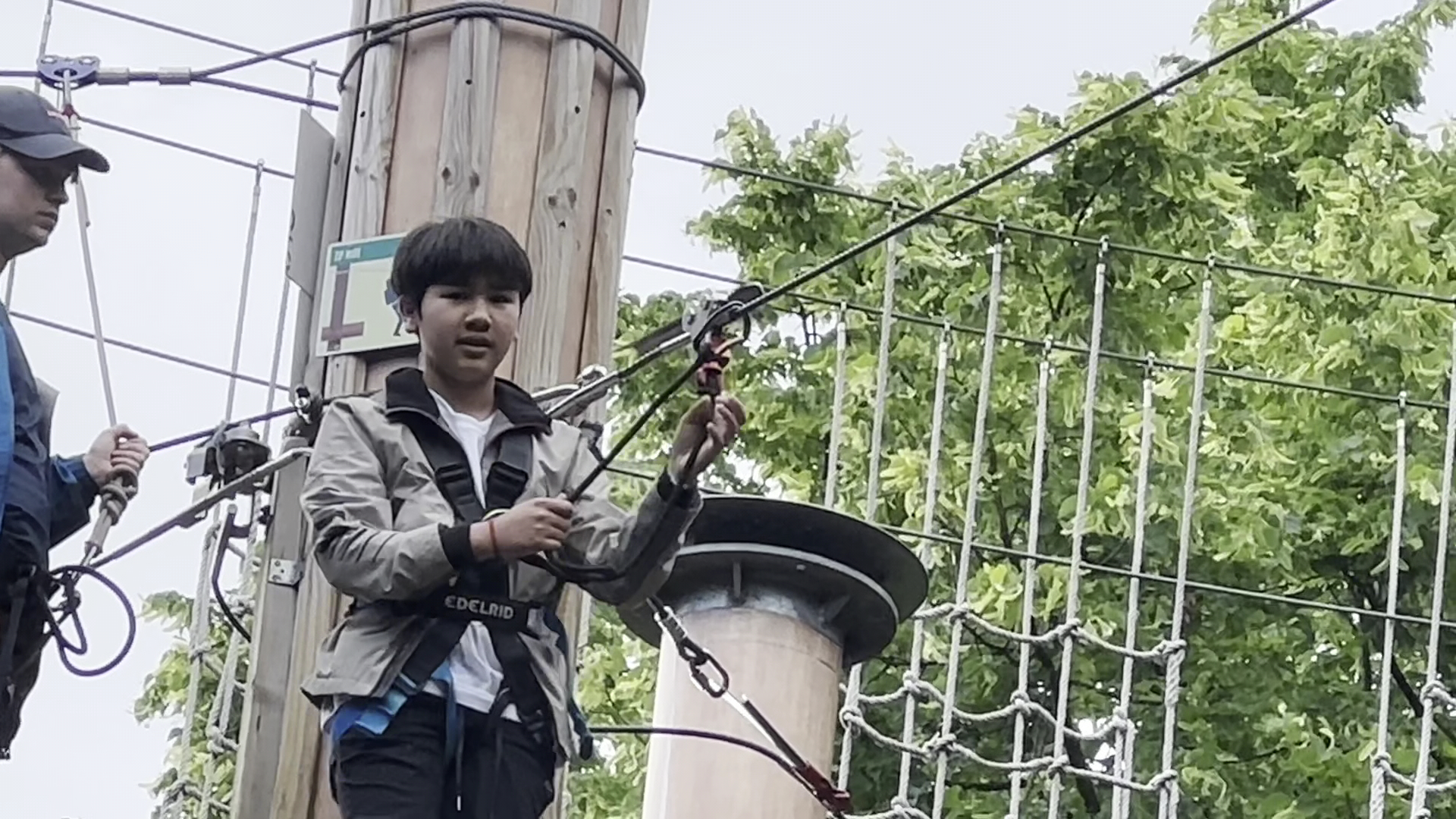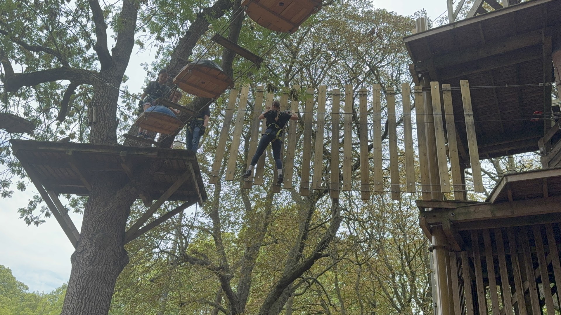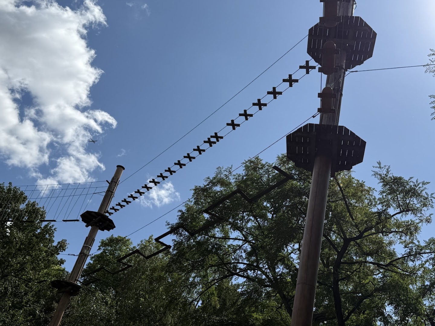 High ropes course with tree-to-tree crossings, Tarzan Swings and zip lines